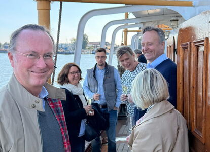 Bei strahlendem Sonnenschein genossen die knapp 70 Gäste tolle Gespräche und ein leckeres Buffet an Bord des Schulschiffs Deutschland.